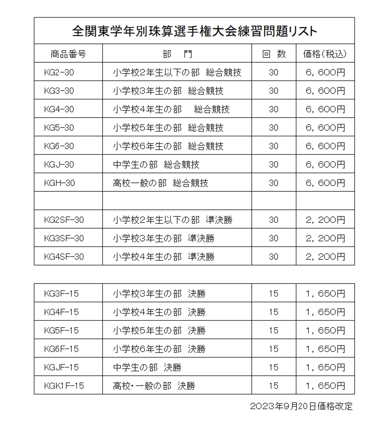 毎年9月に開催されます関東珠算振興会主催、全関東学年別珠算選手権大会の個人総合競技練習問題です。